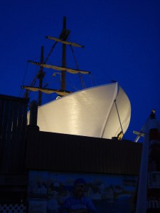 Walking around, I saw some entrepreneurial people were selling neon sticks. I like neon. I bought two. The neon sticks helped me get to my car. Here they are, lighting up my screened in patio.