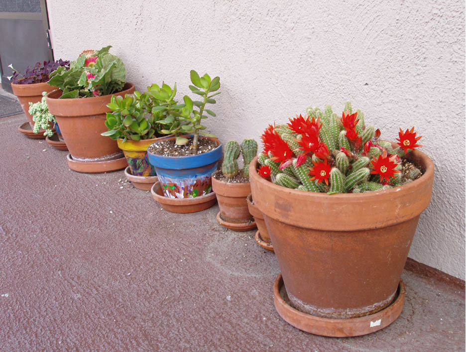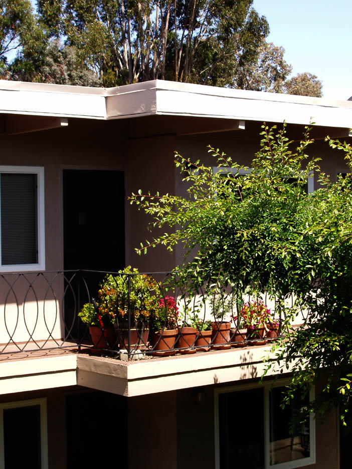 My second apartment was a one bedroom, still on the second floor, across the courtyard from my first apartment. I was back in school and needed to economize. While not as wonderful as the first apartment (the layout was different, not as much natural light) – it was still wonderful. When I was in my second apartment my plants were nestled outside against an exterior wall.