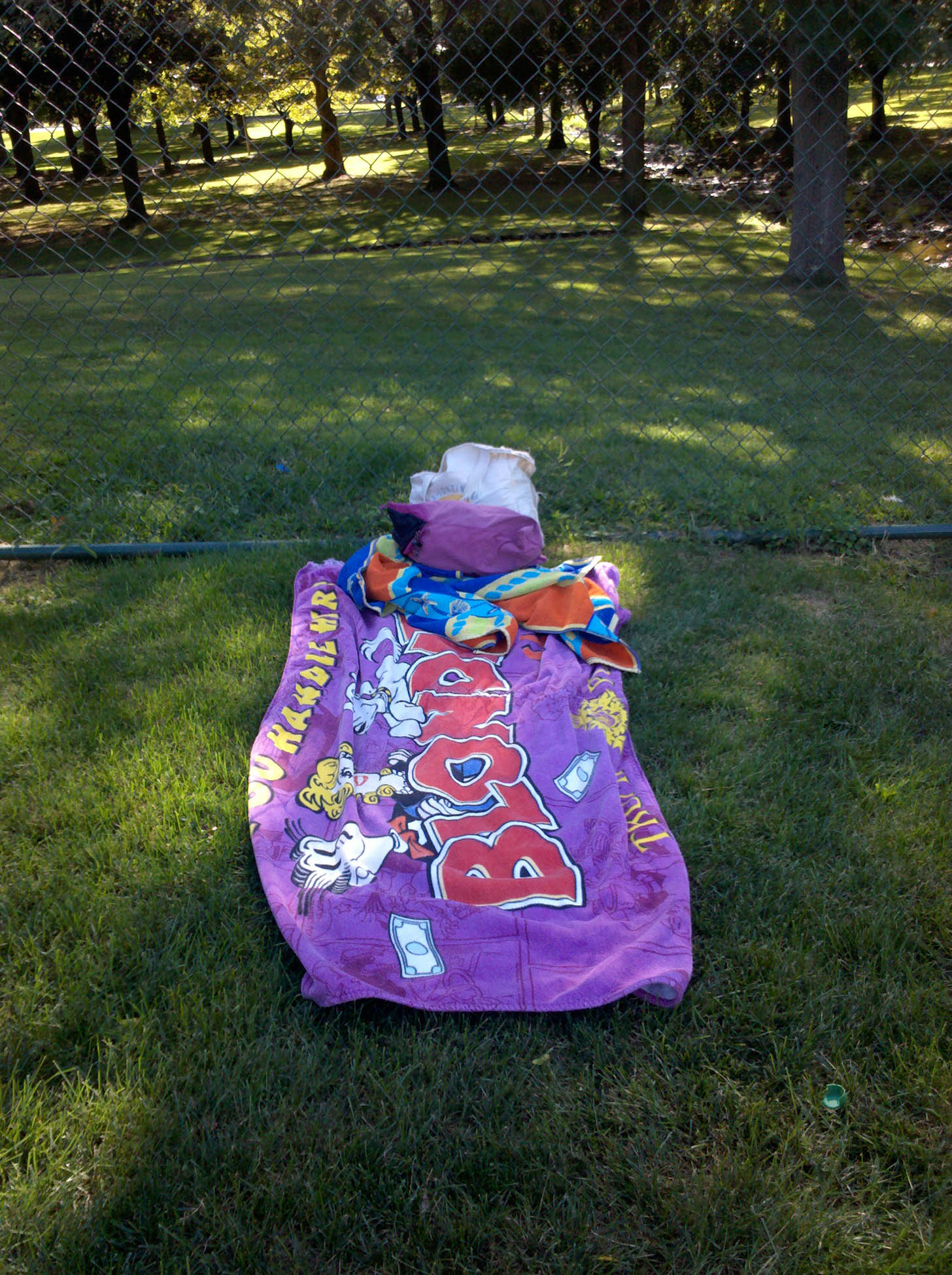Walking around, I saw some entrepreneurial people were selling neon sticks. I like neon. I bought two. The neon sticks helped me get to my car. Here they are, lighting up my screened in patio.