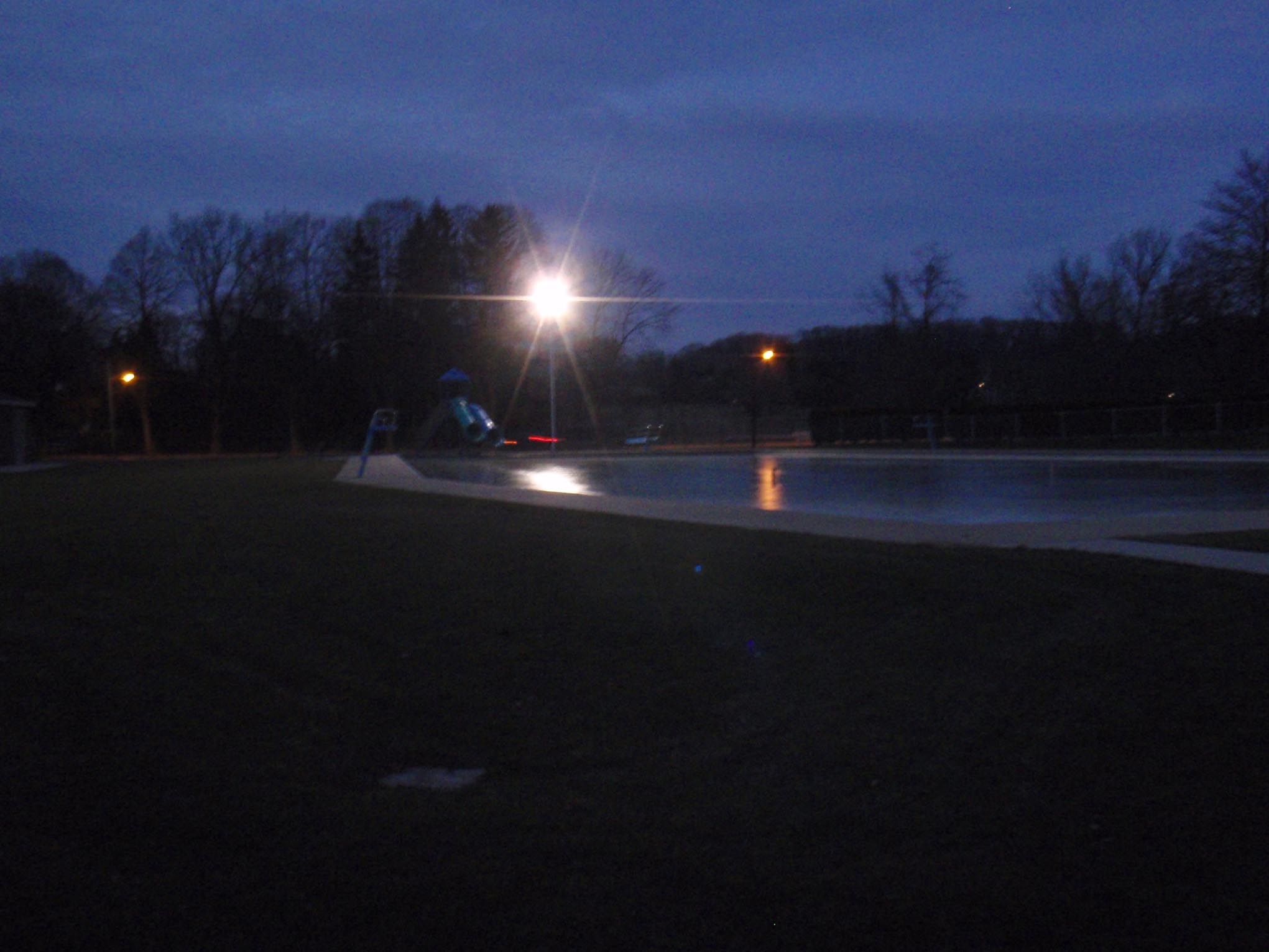I could have stayed for the fireworks, but I decided to go home. Depending on exactly where the fireworks are set off, I can see my town fireworks from my alley, from a couple of blocks away, by the golf course, and sometimes from the second floor of my house. This year I did the alley and walked down to the golf course. The golf course has a tall chain link fence surrounding it, which is new, so the shots from the golf course are not that good.